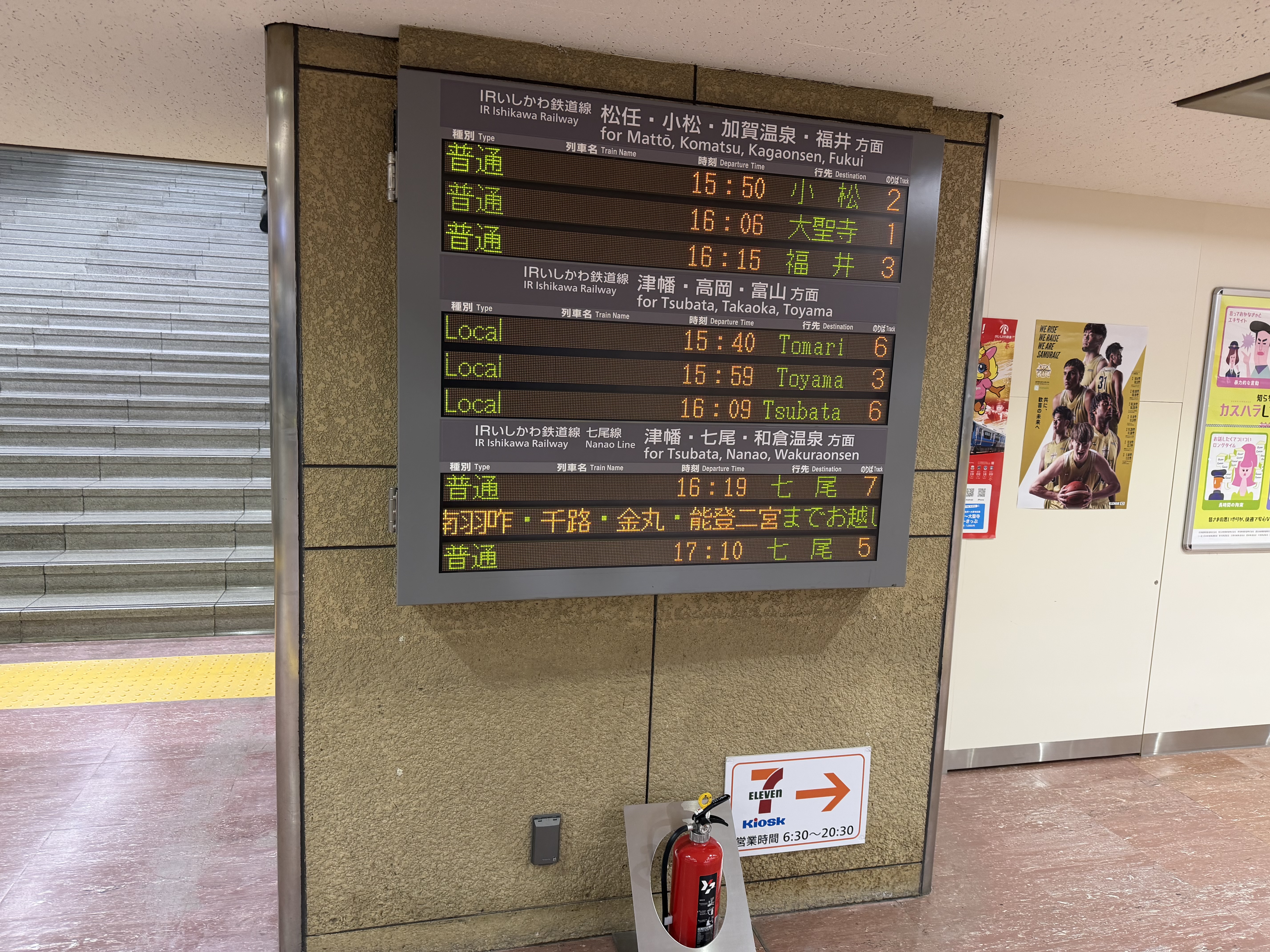 金沢に到着しました。これから在来線に乗り換えて一駅(西金沢)だけ進みます。