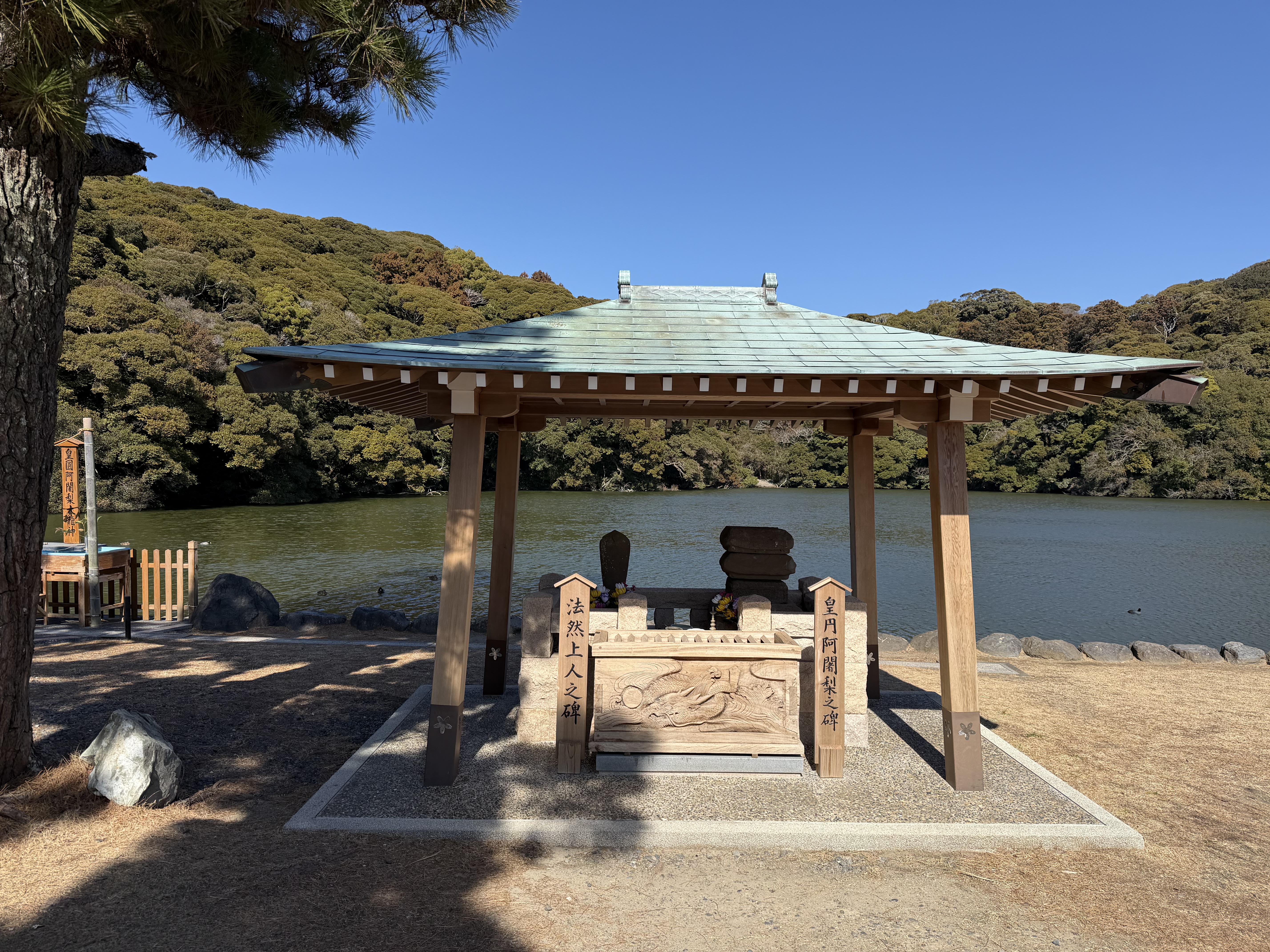 この神社は大きな池があって、鴨と鯉が泳いでます。